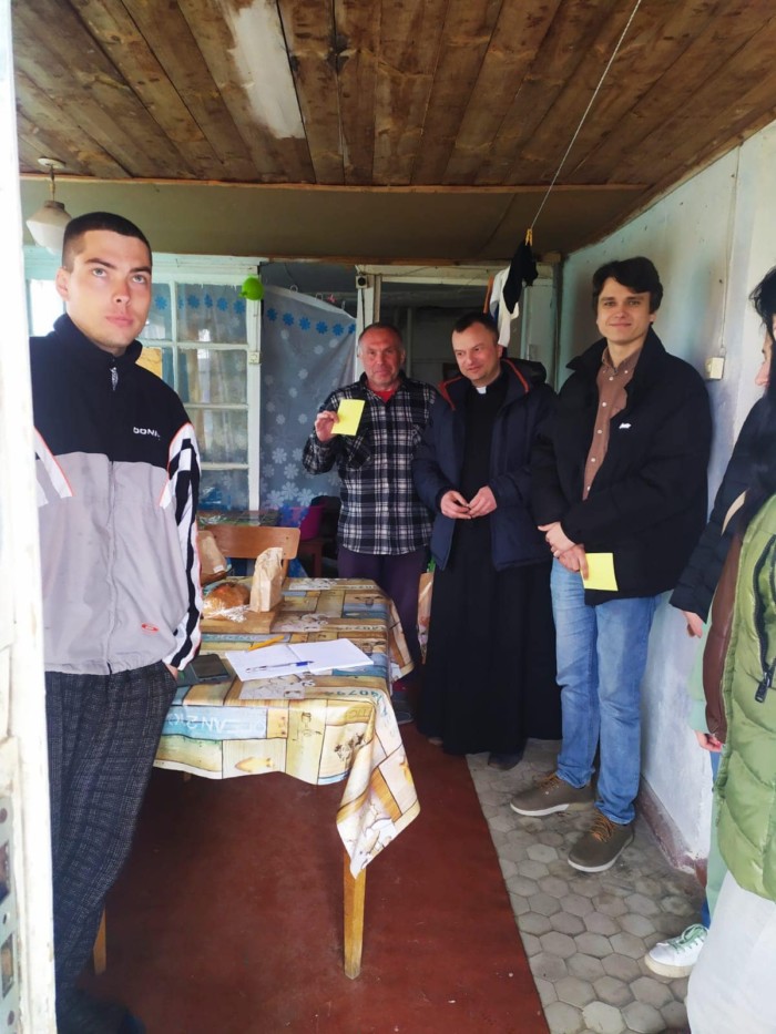 On Holy Saturday we organized an “Evangelization and Charity” action. Together with Sergei (a medical student from Kiev) and local volunteers, we went to visit refugees in Pershotravensk. We told them about the Easter celebrations [in the Rim Catholic Church], brought Easter greetings and gifts. We visited families in great difficulty, from Bucza, Borodianka, Kharkiv, Mariupol. Some people have nothing left, they are homeless. Despite everything, the atmosphere of the meetings was joyful. Wishes and gifts were gratefully accepted!
