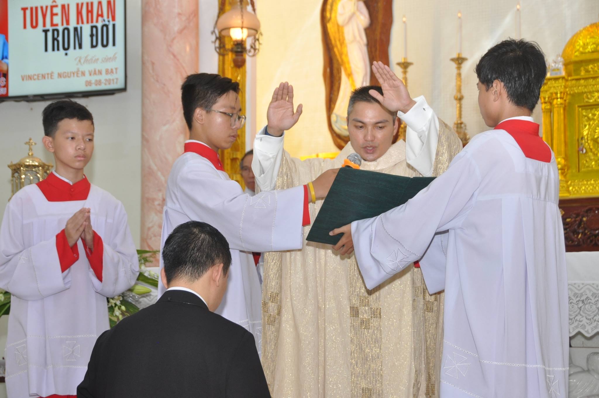 First, we celebrated the final profession of Br. Vincent Bat Nguyen. It was a very special event for both the district and his family. The celebration was done at Br. Vincent’s home parish where more than 500 of his family members, friends, and neighbors attended the ceremony. On Sunday, August 6, the celebration began with the grand procession with Br. Vincent Bat’s family, SCJs, priests and then Br. Vincent and the main celebrant, Fr. Francis Vu Tran.