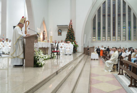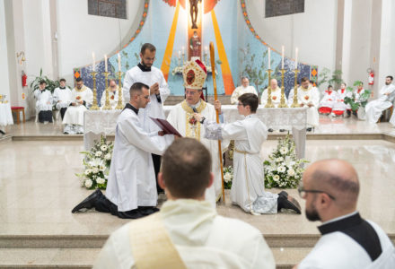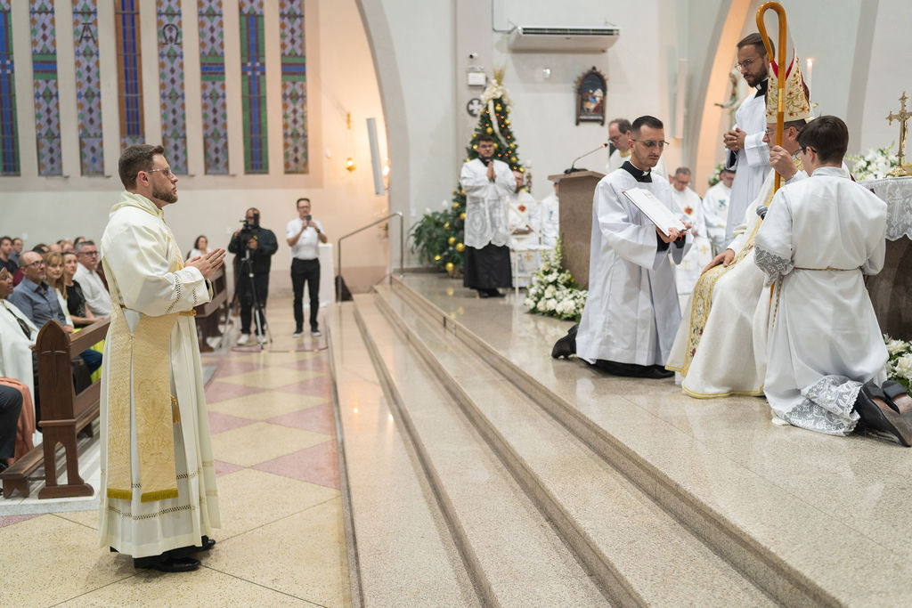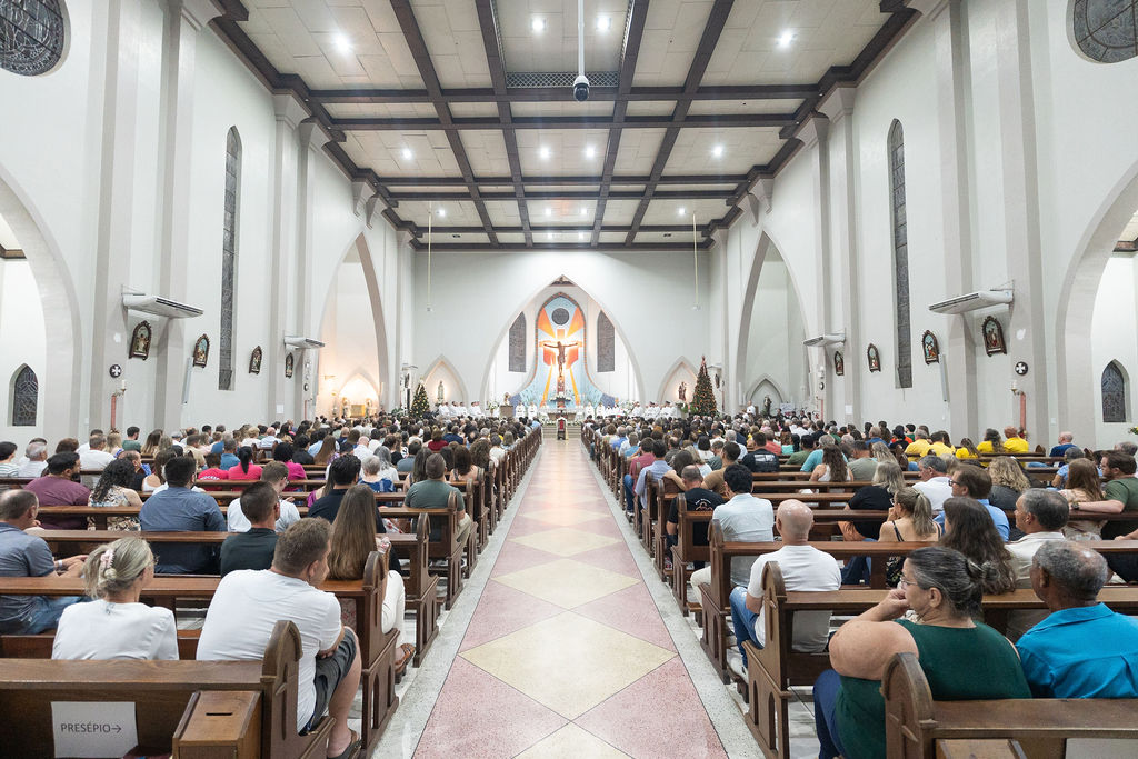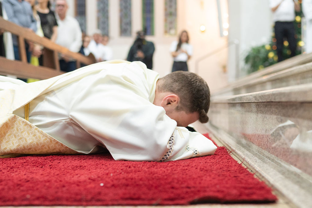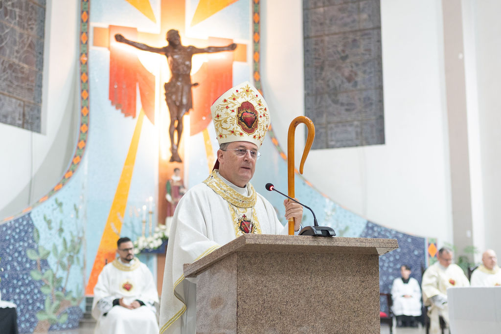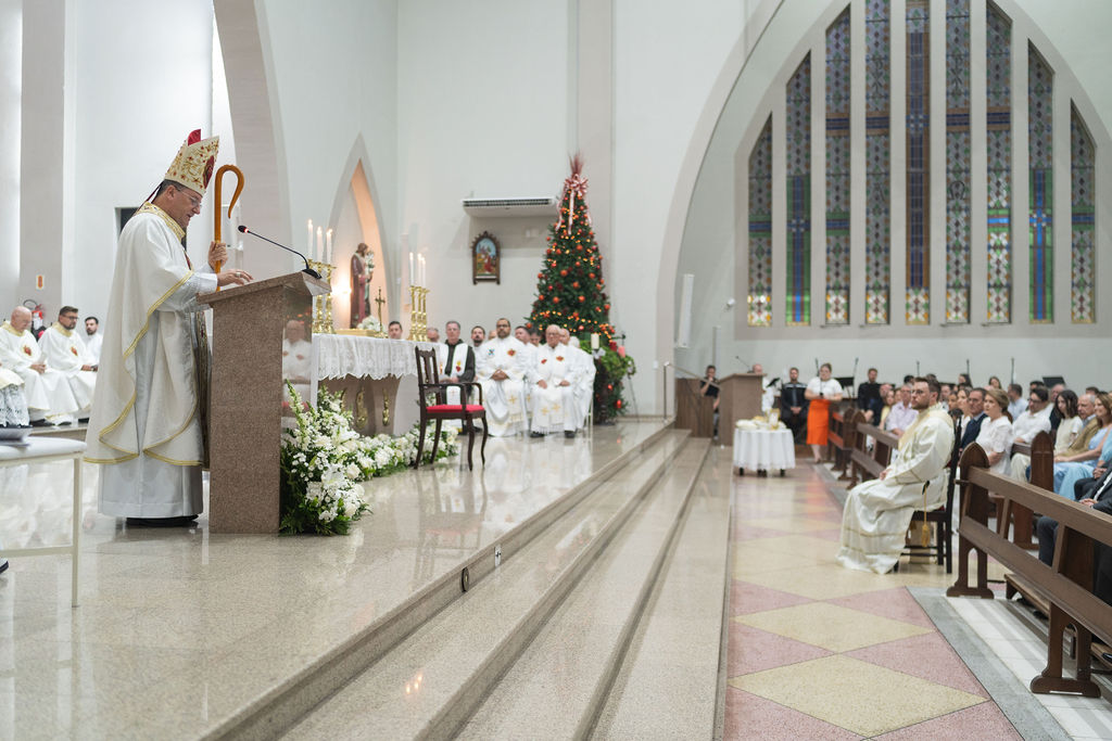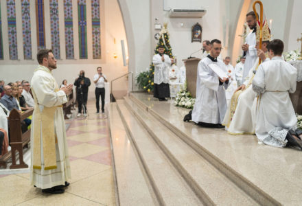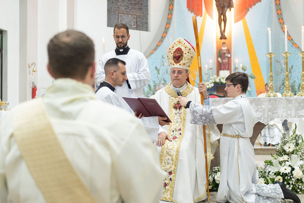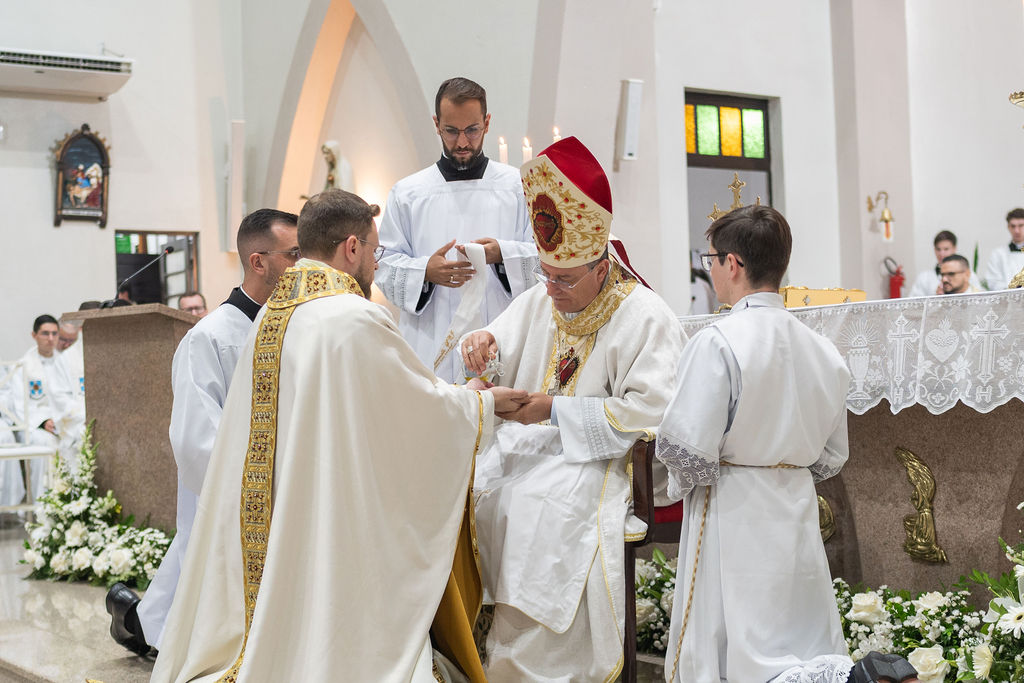 The Congregation of the Priests of the Sacred Heart of Jesus (SCJ) and the community of the faithful gathered on Saturday, December 13, at the Santo Estêvão Parish Church in Ituporanga (SC) for the priestly ordination of Deacon Leonardo Jacomelli, SCJ. The celebration was presided over by Bishop Onécimo Alberton, Auxiliary Bishop of the Archdiocese of Florianópolis, who, through the imposition of hands and the prayer of consecration, conferred upon him the second degree of the Sacrament of Holy Orders.