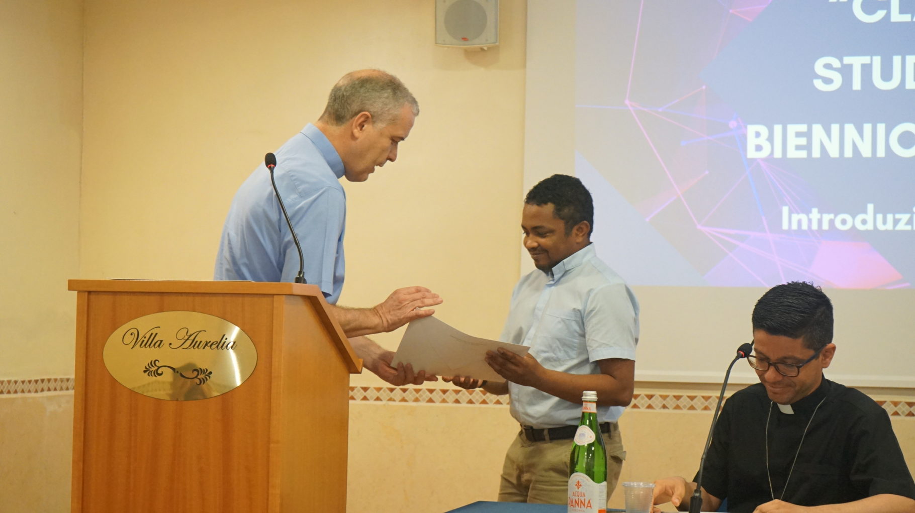 Anche p. Victor ha rivolto alcune parole ai presenti. Ha ringraziato il Superiore Generale e la Congregazione per il sostegno costante a questo progetto formativo così significativo, ha elogiato i tre religiosi per il percorso concluso e ha sottolineato il valore ecclesiale e congregazionale della specializzazione. Nelle sue parole: