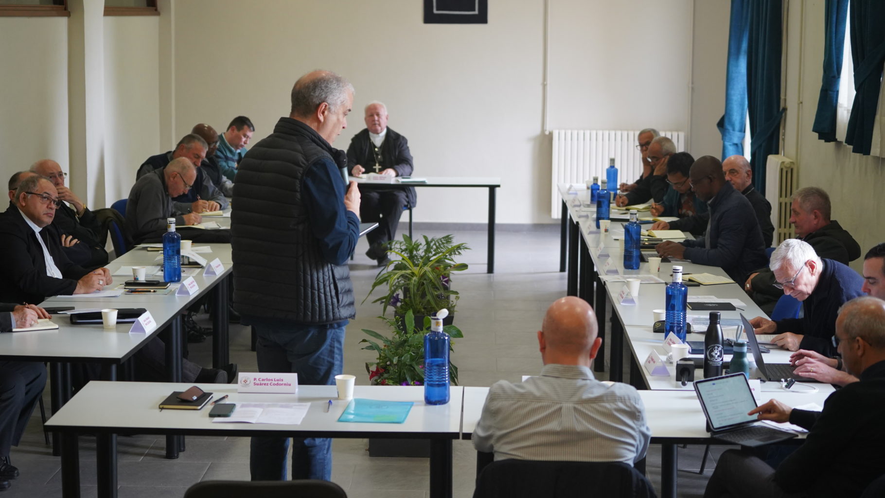 Já na sala de sessões, o Superior Geral, o P. Carlos Luis Suarez, SCJ, proferiu um discurso introdutório no qual agradeceu aos Bispos a sua presença. Traçou brevemente a origem destes encontros internacionais (Brasil em 1999, Roma em 2013 e 2018), antes de precisar o objetivo desta edição de 2026: