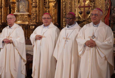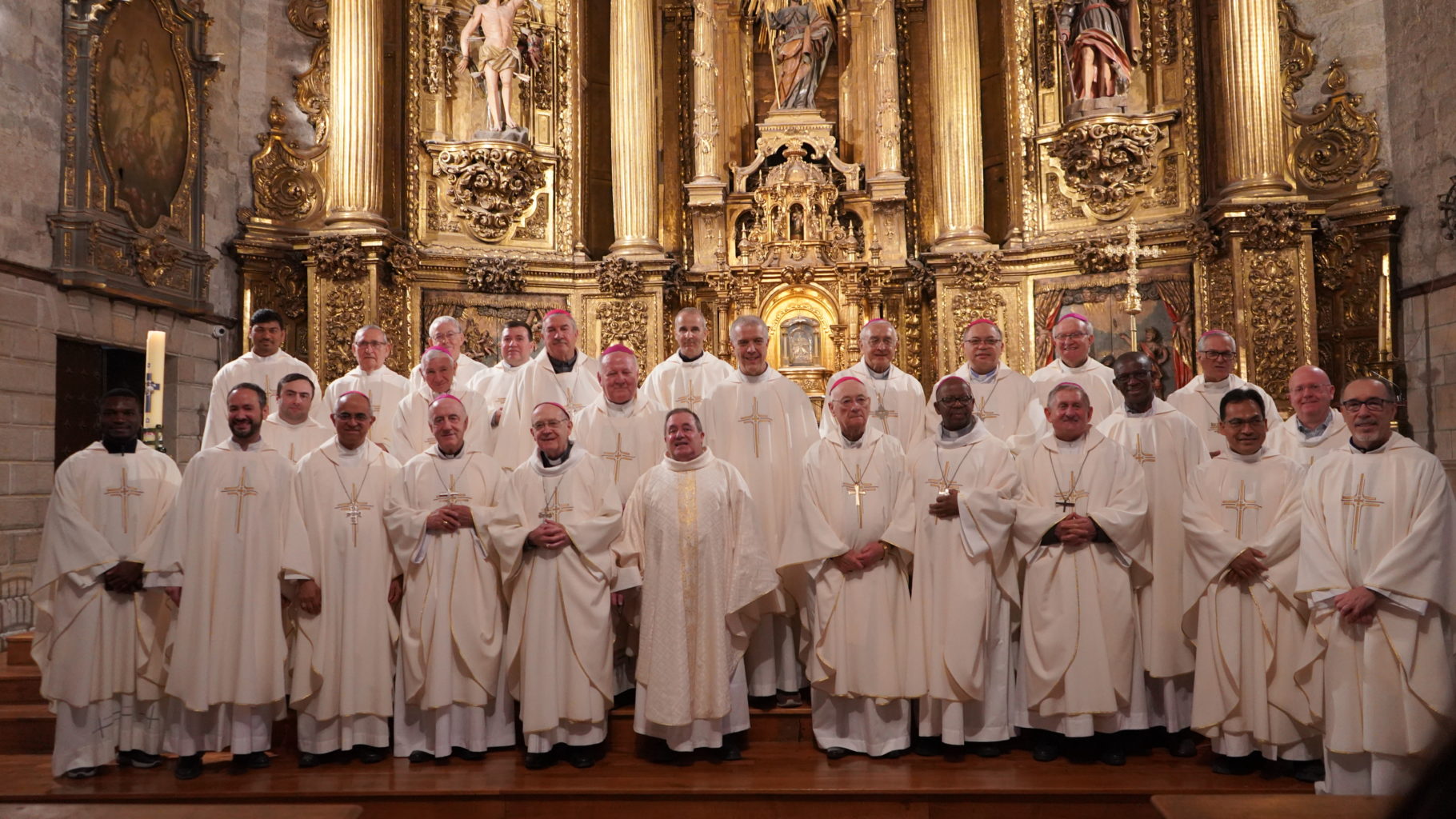 Dos 24 dehonianos que hoje exercem uma função episcopal em todo o mundo, 13 puderam deslocar-se a Puente la Reina, onde decorre até 30 de abril o seu encontro com a Administração Geral dos Sacerdotes do Sagrado Coração. Após um primeiro agrupamento em Madrid no domingo, 26 de abril, os Bispos viajaram juntos para Puente la Reina, acompanhados pelo Superior Provincial de Espanha, o Padre Juan José Arnaiz Ecker, SCJ. À chegada, após as vésperas solenes no Mosteiro do Espírito Santo, receberam as calorosas boas-vindas das monjas, pontuadas por cantos e danças tradicionais, caracterizando a internacionalidade da sua comunidade.